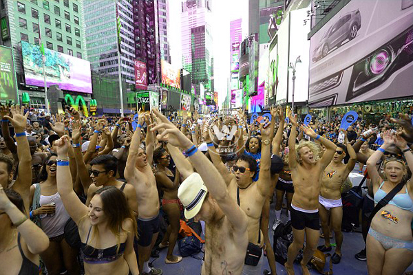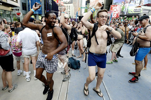 (Image source from: New Yorkers strip to underpants to create world record})